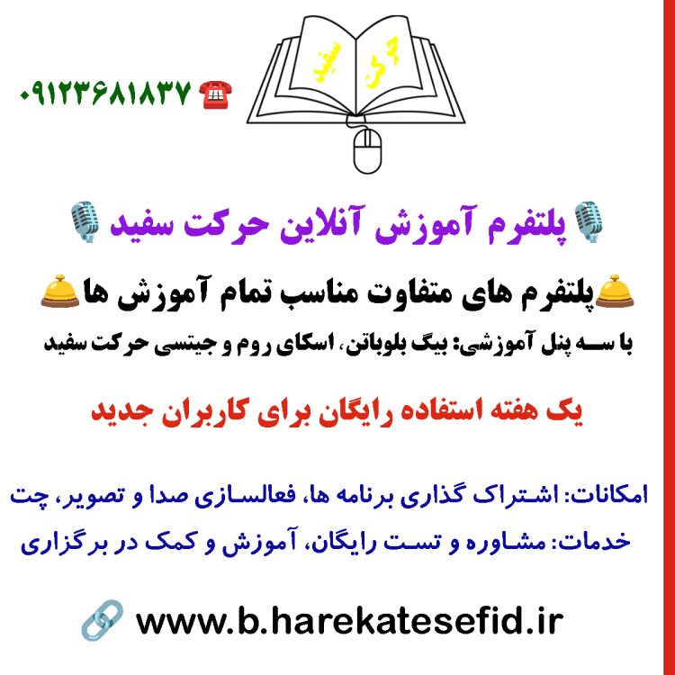 حرکت سفید با سه پلتفرم اسکای روم ، بیگ بلوباتن(ضبط دار) و جیتسی بستر برگزاری وبینارها و جلسات آموزش آنلاین است. بدون نیاز به نرم افزار و فقط از طریق […]
